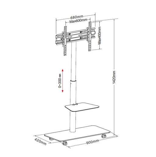Afficher tous les détailsMeuble de présentation mobile pour écrans de 55 à 100 pouces. Ce meuble peut supporter jusqu'à 130 kg.Le plateau mesure 34x73 cm et est idéal pour ...