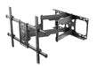 Avec ce support de télévision, vous pouvez accrocher votre TV à plat contre le mur, puis l'éloigner du mur (jusqu'à 63 centimètres) et ensuite faire pivoter la télévision vers la droite ou la gauche et l'incliner vers le haut ou vers le bas.